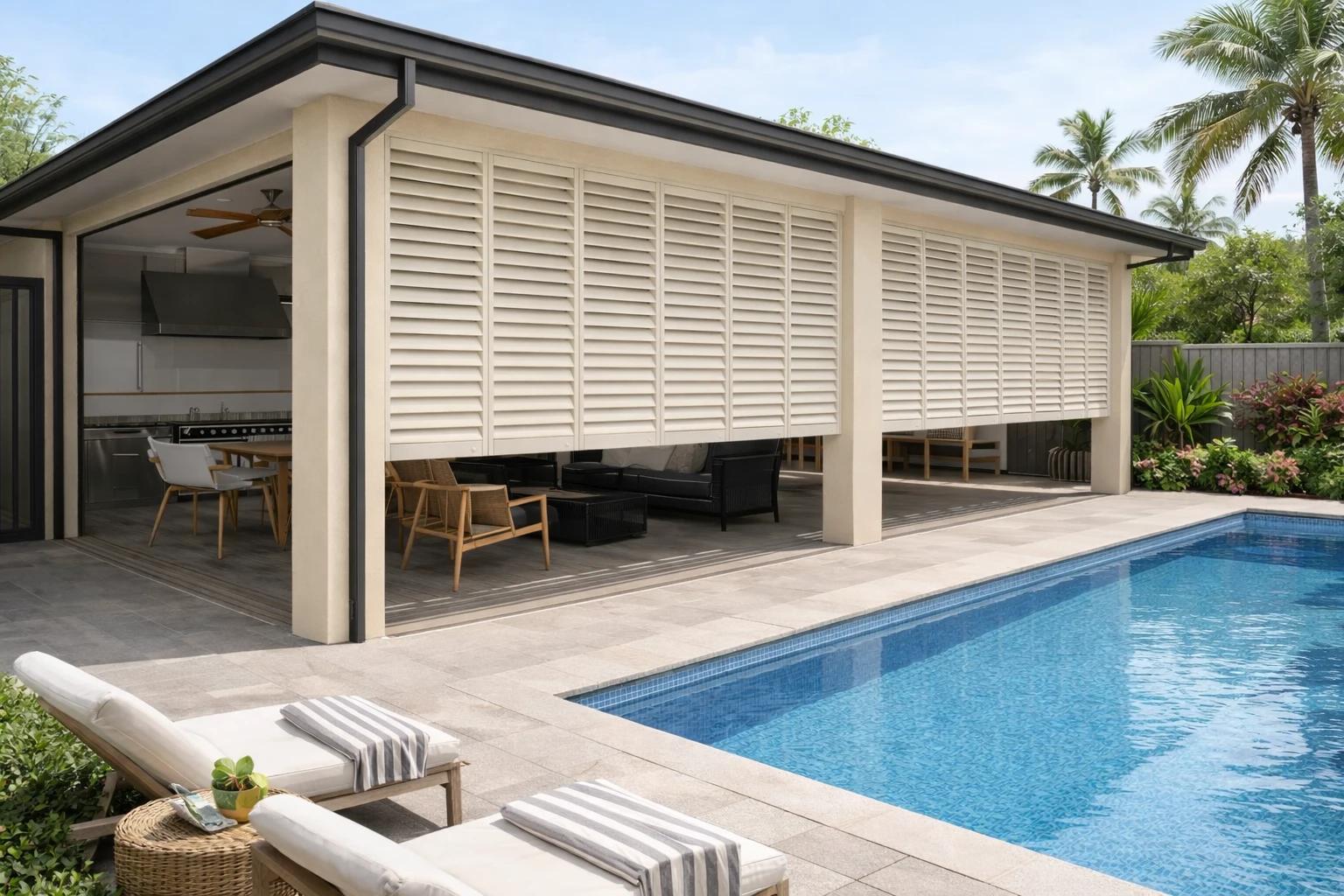 Exterior shutters add character, contrast, and curb appeal—custom-built for Tampa Bay homes to complement your home’s architecture.